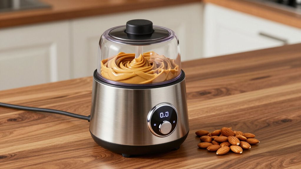 Choosing the right almond butter maker is like tending a garden—you need the right tools to nurture your harvest. With so many options, finding that perfect machine feels like discovering a hidden grove, where each nut transforms into rich, creamy butter. Trust your instincts and consider what suits your needs best. After all, your kitchen is your orchard, and with the right machine, every batch becomes a harvest worth celebrating.