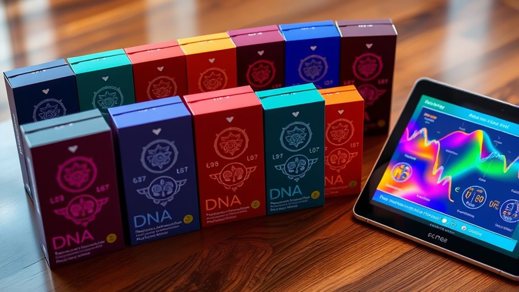 DNA test costs can vary considerably, so it’s important to weigh what you’re getting for your money. Prices typically range from $39 to over $200, depending on features and depth of analysis. Some kits include subscription memberships or extra reports, which can boost the overall value. It’s vital to compare what’s included—ethnicity estimates, health insights, or family tree access—to determine if the price is justified. Consider whether added features like parental side origins or trait analysis are worth the extra cost. Also, keep an eye out for bundle deals or promotions that offer extensive testing at a better value. Ultimately, balancing cost with the quality and scope of information provided will help you find the right kit for your needs.