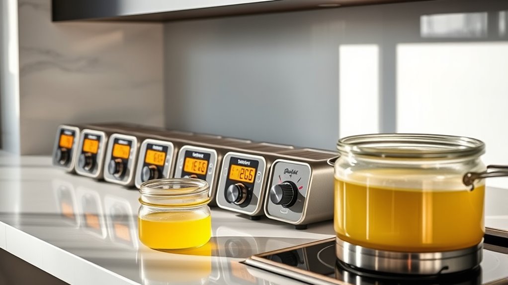 Choosing the right butter clarifier thermostat can make all the difference in achieving perfectly clarified butter every time. With options like digital controllers and dual sensors, you’ll find one that suits your needs effortlessly. Imagine your kitchen filled with the rich aroma of perfectly clarified butter—doesn’t that make you want to get started today? Trust me, investing in the right thermostat guarantees consistent results and elevates your culinary game.