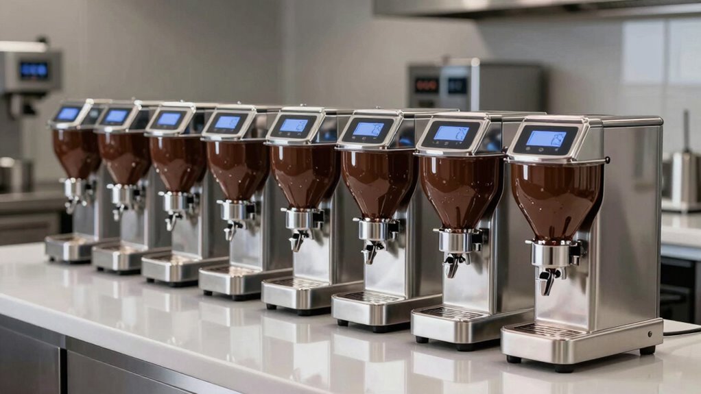 You might worry about finding replacement parts for these machines, but I can assure you, they’re more accessible than you’d think. Most reputable brands keep spare parts in stock, and many have extensive networks for quick delivery. I’ve found that with a little research, you’ll easily locate the components you need, ensuring your machine stays in top shape and keeps your chocolate perfectly tempered.