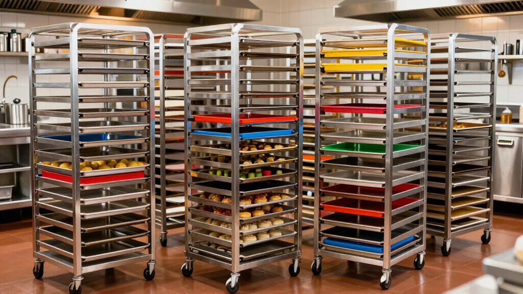 Are these racks built to handle heavy-duty commercial use? Absolutely! I’ve found that top-tier sheet pan racks on wheels are designed with durable materials like stainless steel, making them sturdy enough for constant, demanding use. They often feature reinforced frames and heavy-duty casters. If you’re looking for reliability and longevity, these racks are a smart investment. Do you need something specifically for high-volume kitchens?