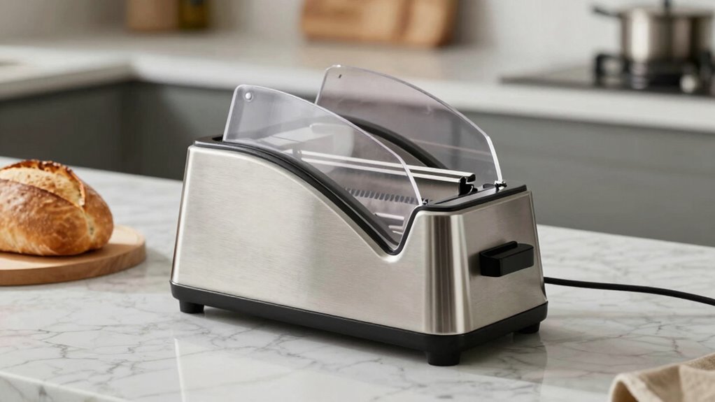 Choosing the right countertop bread slicer feels like finding the Holy Grail of kitchen tools—saving time, effort, and perfectly slicing every loaf. Whether you prefer manual precision or electric ease, there’s a model tailored for you. Remember, as with any great quest, patience and understanding your needs lead to victory. Invest wisely, and your bread-slicing journey will be as satisfying as a well-baked loaf, echoing the timeless pursuit of excellence.