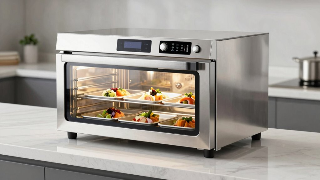 Choosing the right countertop hot holding cabinet is like finding the perfect orchestra conductor—guiding your food to stay warm and delicious till served. With so many options, focus on size, heat controls, and ease of cleaning. When you pick the right piece, it’s like having a reliable partner that keeps your kitchen running smoothly and your meals perfect. Trust your instincts, and you’ll hit the high notes every time.