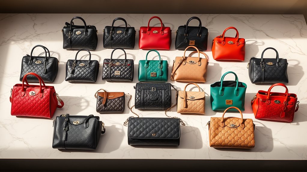 Choosing a designer handbag on Amazon requires paying close attention to the materials and craftsmanship, as these factors directly impact the bag’s quality and longevity. Premium materials like genuine leather, signature canvas, or durable nylon ensure a luxurious feel and durability. Expert craftsmanship is visible through precise stitching, reinforced seams, and detailed finishing, which enhance both the bag’s look and durability. Authentic designer bags often feature signature hardware, custom zippers, and high-grade metals resistant to tarnishing, adding to their value. The choice of materials also affects weight, flexibility, and resistance to wear, so consider your climate and usage. Proper craftsmanship, including quality control and secure hardware, guarantees the bag maintains its structure and beauty over time.