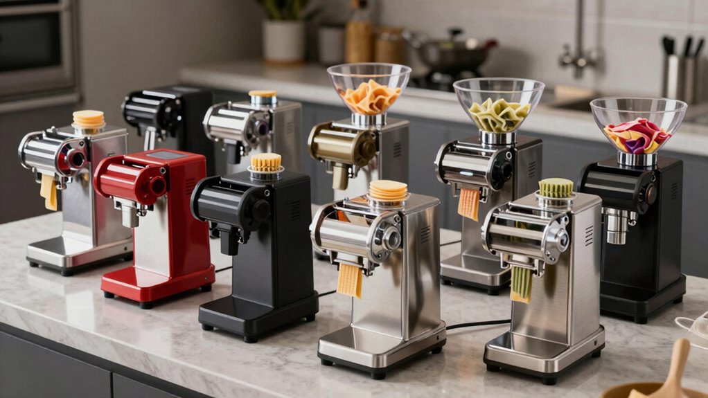 If you’re searching for the 15 best electric pasta extruder machines for 2026, I can help. I’ve reviewed top models like the Cuisinart PM-1, Marcato Pastadrive, and WICHEMI Electric Pasta Maker, focusing on features like power, shape versatility, and ease of use. These options suit both home chefs and small businesses, offering durability and variety. Keep exploring, and you’ll discover detailed insights to find the perfect machine for your needs.