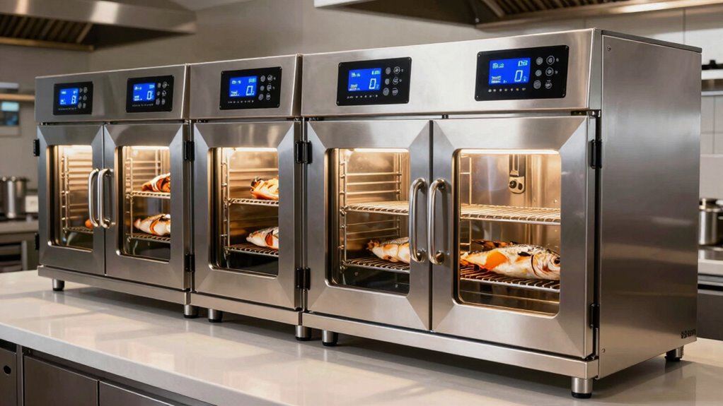 These electric fish smoker cabinets are pretty energy-efficient, I’ve found. They use less power compared to traditional smoking methods, mainly because they’re well-insulated and have precise temperature controls. I notice they consume minimal electricity, which helps save on energy bills. Plus, many models have eco-friendly features that reduce overall energy use. Overall, I’d say they’re a smart choice for anyone wanting great smoked fish without wasting energy.