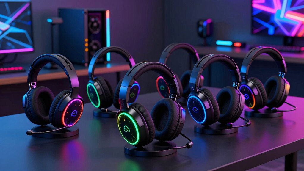 The way a gaming headset connects to your PS5 can considerably impact your gaming experience. Wired headsets using 3.5mm jacks or USB tend to offer more stable, low-latency audio, which is vital for competitive play. Wireless options, including Bluetooth and proprietary 2.4GHz connections, give you more freedom of movement and less clutter. Many headsets now feature dual-mode connectivity, allowing seamless switching between wired and wireless setups, enhancing versatility across devices. Keep in mind, PS5 compatibility may depend on specific connection types or adapters, especially for wireless models using USB dongles or Bluetooth. Ultimately, your choice depends on balancing the need for stability versus convenience, ensuring your headset’s connectivity method aligns with your gaming style and setup.