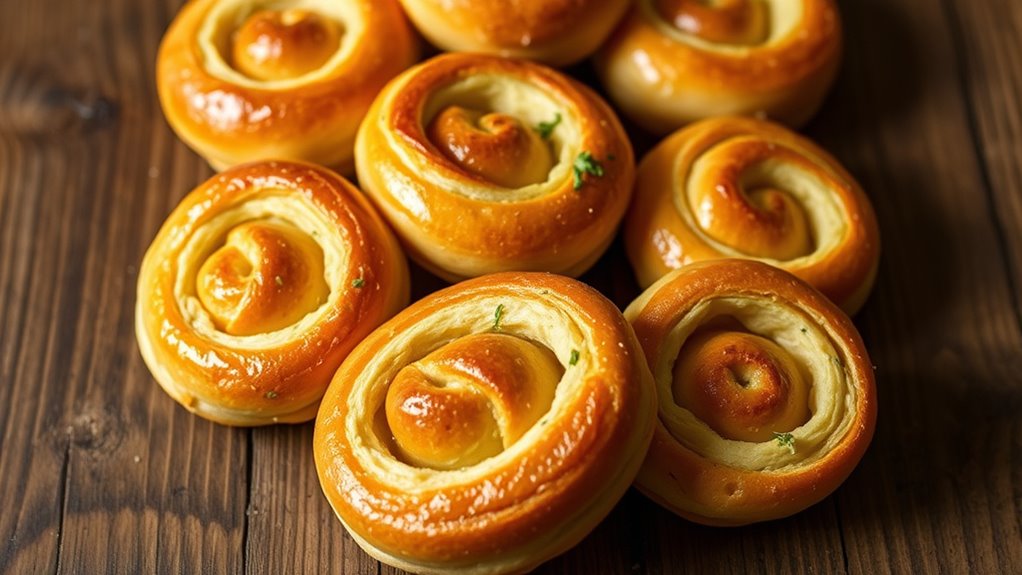 To store garlic-herb butter roll tubes, I keep them in an airtight container in the fridge to maintain freshness and prevent odors from seeping in. If I want to save them longer, I freeze the tubes wrapped tightly in plastic wrap and then place them in a freezer-safe bag. Just remember to bring them to room temperature before baking for the best flavor and texture.