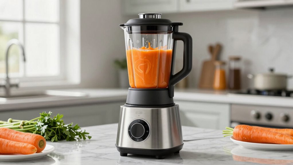 Choosing the right high speed blender can transform your cooking routine, making soups and sauces effortlessly smooth. Did you know that nearly 70% of home cooks report using blenders daily? With options like powerful motors and versatile features, you’re set to elevate your culinary game. Remember, selecting a blender that fits your needs guarantees consistent results and long-term satisfaction. Happy blending—your perfect soup or sauce is just a whirl away!
