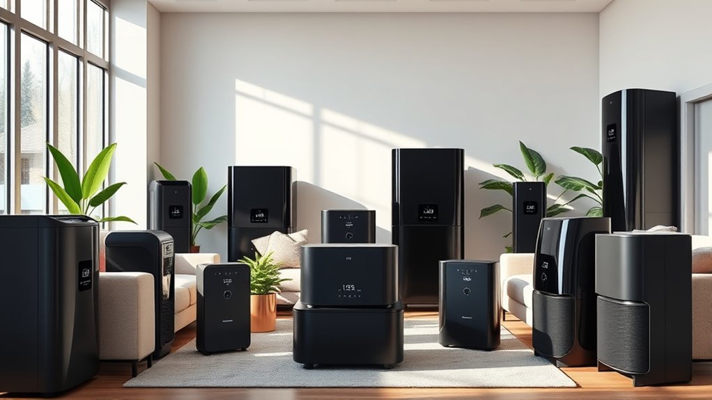 If you’re looking to improve your home’s allergy comfort, high-end air purifiers like LEVOIT, BLUEAIR, and LUNINO offer advanced filtration, large coverage, and ultra-quiet operation. They capture pollen, pet dander, mold, and viruses effectively, often with smart features for easy control. With fast purification times and sleek designs, these models transform your environment into a healthier space. Stick around, and you’ll discover the top options that suit your needs perfectly.