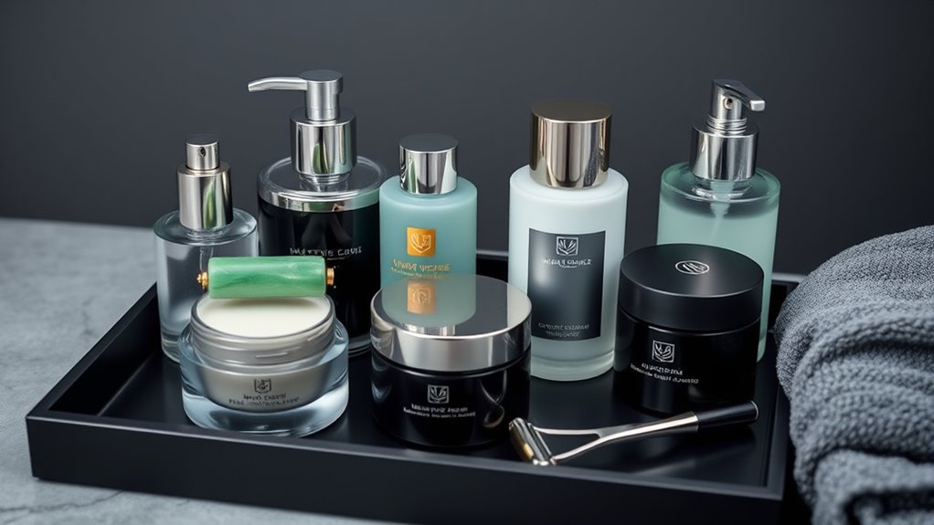 Selecting a high-end men’s skincare kit that truly works means understanding my skin type and choosing products designed specifically for it. Different skin types require different formulations to achieve *ideal* results. If I have sensitive skin, I look for hypoallergenic, fragrance-free products that minimize irritation. For dry skin, I prioritize kits with hydrating ingredients like hyaluronic acid, glycerin, or natural oils to restore moisture. If my skin is oily or prone to breakouts, I choose kits with oil-control, mattifying, and non-comedogenic formulations to manage sebum and prevent acne. Picking a kit tailored to my skin type ensures better absorption, reduces irritation, and delivers noticeable improvements. Knowing my skin’s needs helps me select products that work harmoniously and enhance my grooming routine.