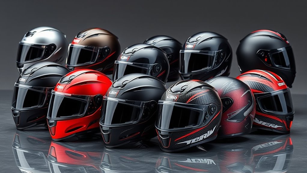 If you’re looking for the top high-end motorcycle helmets that blend style and safety, I’ve got you covered. From lightweight carbon fiber shells to advanced impact management systems, these helmets meet rigorous safety standards like DOT, ECE, and SNELL. They feature quick-change visors, integrated communication options, and sleek designs perfect for any rider. Want to discover the best options that offer both protection and style? Keep exploring to find the ideal helmet for your ride.