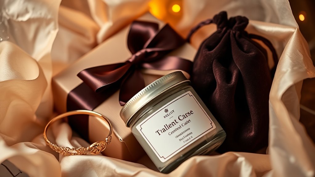 Sticking to a $200 budget while shopping for luxury gifts requires careful comparison across retailers and online stores to find the best deals. I focus on gifts that offer high perceived value and quality within this price range to maximize the sense of luxury. It’s essential to compare prices to avoid overspending and ensure I get the best deal. Sometimes, opting for sets or multi-component items provides more value for my budget. I also stay mindful of additional costs like shipping, taxes, or personalized engravings that could push the total over my limit. By being strategic and diligent, I can find a luxurious gift that feels special without compromising my financial boundaries. This approach guarantees both satisfaction and financial peace of mind.