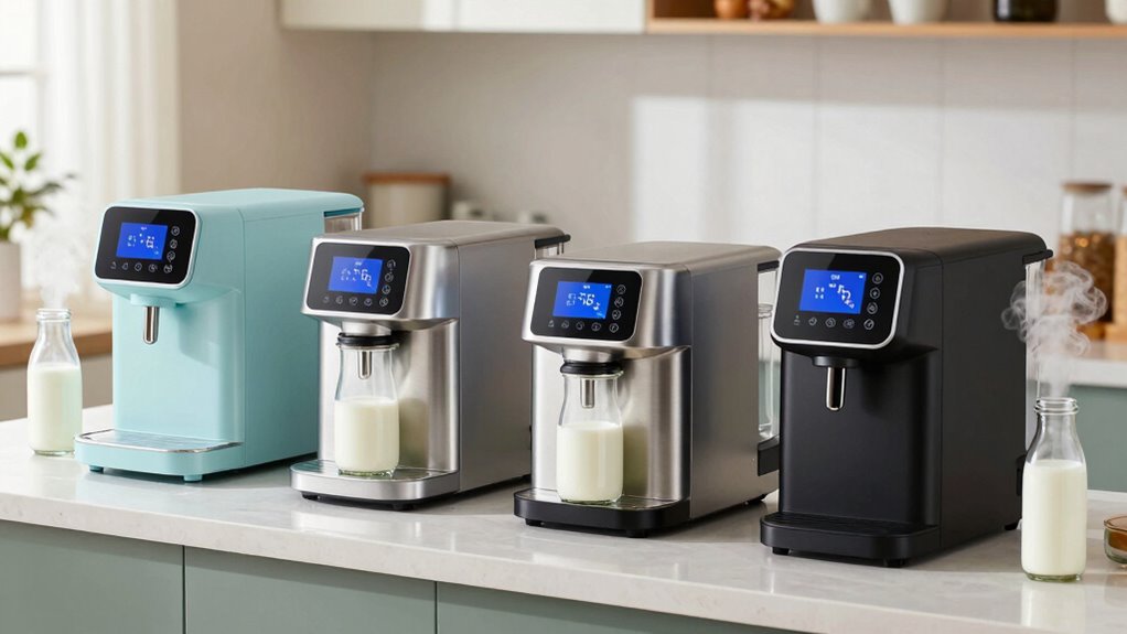 Oh, safety features? These new machines are practically fortress-like! They include automatic shut-off to prevent overheating, child lock systems that even your curious toddler can’t bypass, and real-time temperature monitoring to keep your milk just right—no science experiments here. Some even have digital alerts for maintenance or if something’s off. Basically, they’re designed to keep you safe, sane, and your milk perfectly pasteurized—no drama required.