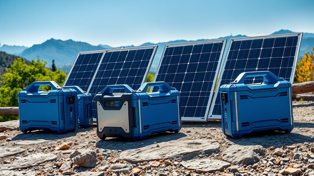 Imagine you’re camping off-grid, and your phone, lights, and small appliances suddenly die. With one of these top portable solar generator kits, you stay powered and connected. I’ve seen adventurers rely on these kits for weeks, proving they’re a game-changer. Whether you’re hiking, camping, or facing emergencies, choosing the right generator guarantees you never get left in the dark. Stay prepared, stay powered—the outdoors has never been so reliable.