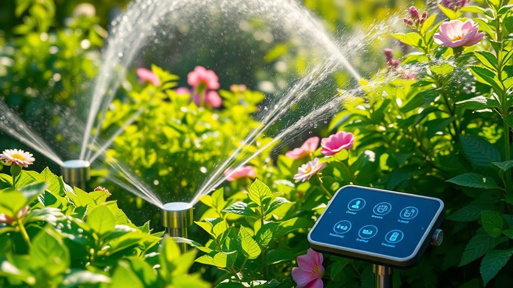 If you want a lush, healthy garden, investing in premium smart irrigation systems is key. Models like Rachio, Netro Spark, Orbit B-hyve, and ImoLaza offer advanced weather-smart watering, app control, and easy DIY installation. They reduce water waste with rain sensors and soil data, and many are weatherproof and durable. Whether you prefer drip systems or multi-zone controllers, these options provide efficient, reliable watering. Keep exploring to find out which system best fits your garden needs.