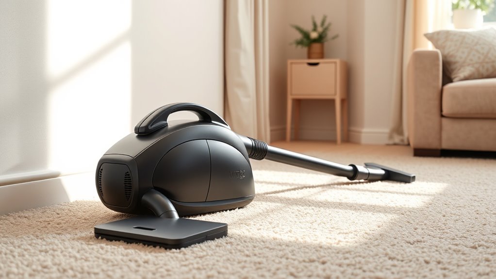 When selecting a quiet canister vacuum for your apartment, filtration and air quality should be top priorities. High-efficiency filters like HEPA or ULPA capture 99.97% to 99.999% of microscopic particles, drastically improving indoor air. Multi-stage filtration systems prevent dust and allergens from recirculating, guaranteeing cleaner air after each use. Washable and reusable filters help save money while maintaining consistent performance over time. Sealed filtration systems are essential for preventing dust leakage, especially in sensitive environments like apartments. Regular maintenance, including cleaning or replacing filters, is vital to keep airflow strong and air purified. Prioritizing these features ensures your vacuum not only operates quietly but also promotes a healthier living space for you and your neighbors.