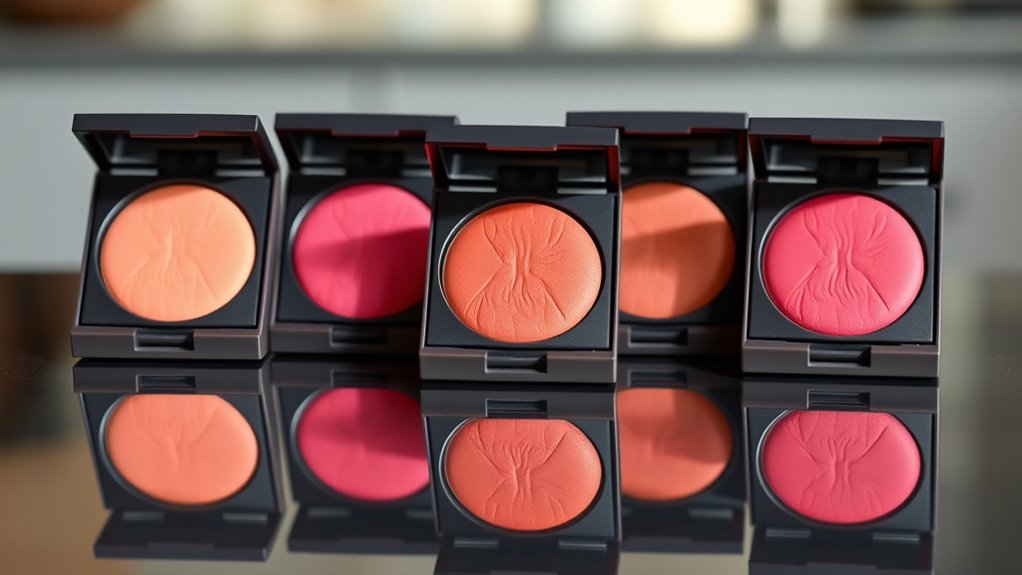 Choosing a good dupe means paying close attention to shade similarity, as even small differences can change the overall look. I always compare the shades closely to guarantee the color matches or complements my skin tone. It’s important to look for dupes with similar undertones—warm, cool, or neutral—that align with the original’s effect. I also check the hue intensity and opacity to replicate the soft or vibrant finish I want. Since formulation and finish matter, I consider whether the dupe offers a matte, dewy, or satin look similar to the original. Examining product descriptions and swatches helps me verify that the shade similarity meets my expectations, making sure I get a dupe that truly mimics the Rare Beauty blush without sacrificing the desired visual impact.