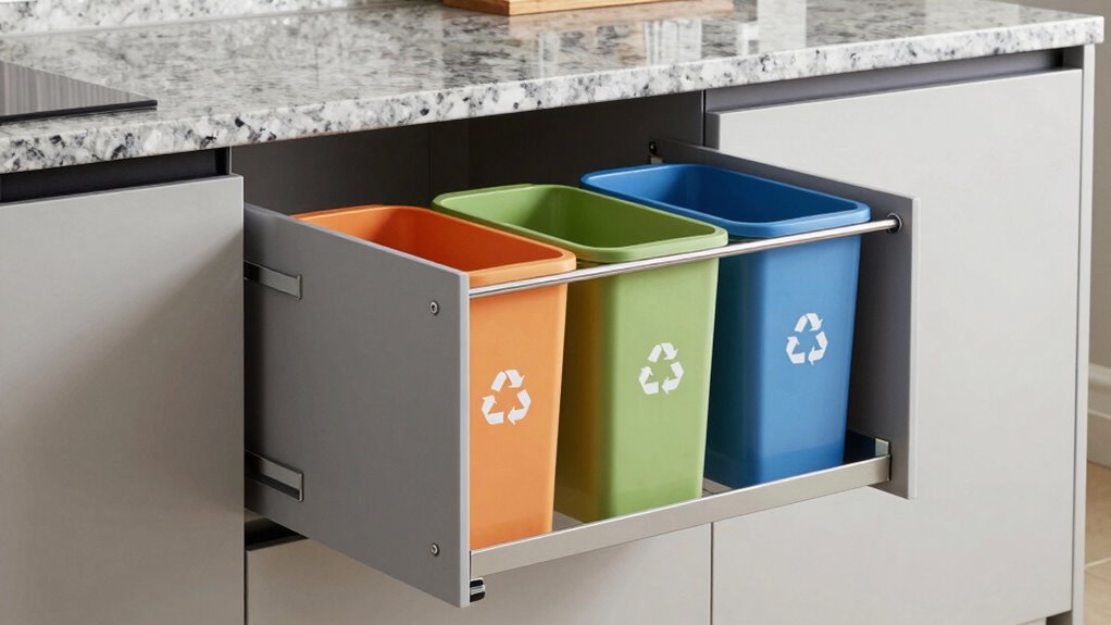 When choosing the perfect recycling bin cabinet pull-out, think about your space and what size works best. For example, I once upgraded my kitchen with the Rev-A-Shelf double pullout, and it transformed how I handle trash—no more clutter! Picking the right one makes a real difference in keeping your kitchen tidy and eco-friendly. So, consider your needs carefully, and you’ll enjoy a cleaner, more organized space in no time.
