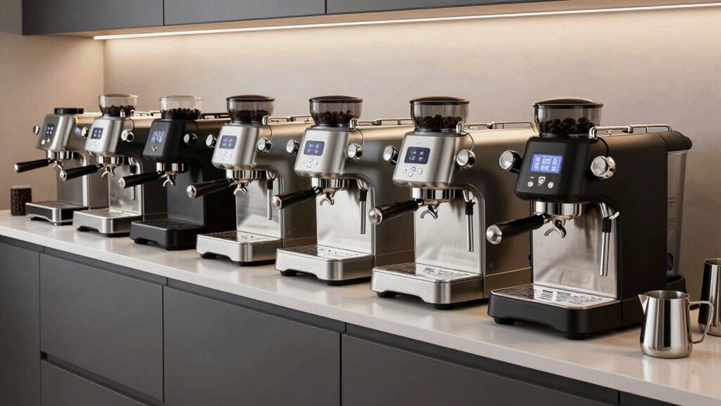 If you’re looking for the 15 best semi-automatic espresso machines for beginners in 2026, I’ve got you covered. These models combine easy-to-use controls, built-in grinders, and reliable pressure systems to help you craft barista-quality drinks at home. From sleek stainless steel designs to quick heat-up times, they offer great features for newcomers. Stay with me, and I’ll share all the details to help you find the perfect machine for your coffee journey.