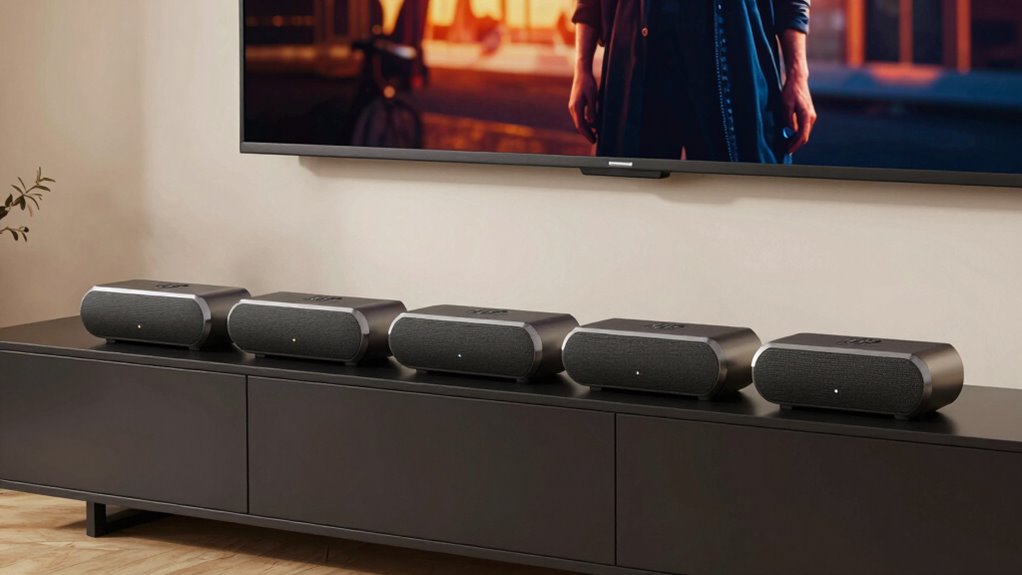 If you’re like me, finding a powerful yet affordable soundbar feels like discovering hidden treasure. These options under $200 unleash rich, immersive sound that wraps around you like a cozy blanket on a chilly night. Picture crystal-clear dialogue and booming bass transforming your living room into a mini theater. With these picks, you’ll enjoy big sound without emptying your wallet, making every movie night feel like a front-row experience—without the hefty price tag.