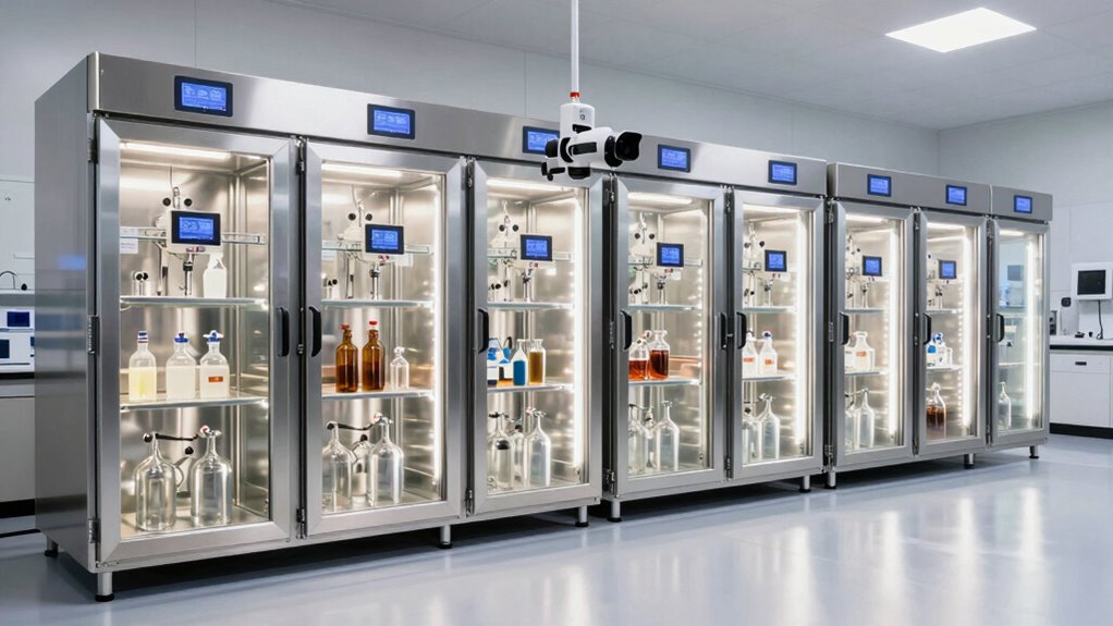 I find that cleaning and maintaining these chambers is quite straightforward. I usually wipe down the interior with a damp cloth and mild detergent, making sure to reach all corners. The smooth surfaces and removable shelves make it easy to keep everything hygienic. Regular maintenance involves checking seals and filters, which I do monthly. Overall, they’re designed for easy upkeep, so I don’t spend much time on cleaning.