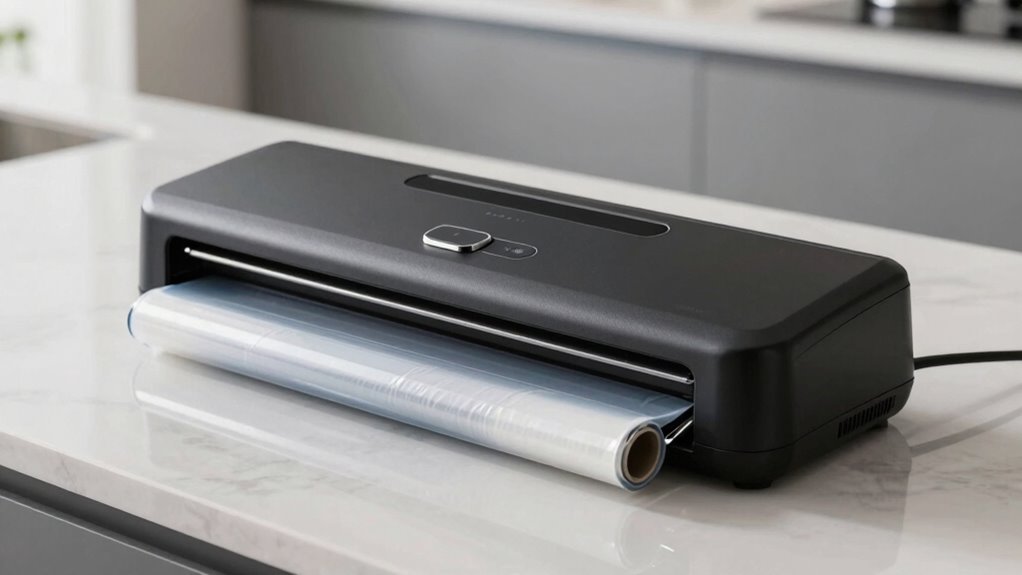 Choosing a vacuum sealer with dedicated roll storage and a built-in cutter makes the sealing process more efficient and organized. A dedicated storage compartment keeps rolls protected from dust and damage, ensuring they stay in good condition. The built-in cutter allows for precise, clean cuts, reducing waste and ensuring a proper seal every time. Regular maintenance, like cleaning and sanitizing the roll area, is essential to prevent contamination and extend the device’s lifespan. Opt for models with easy-access roll chambers and cutters to make bag preparation quick and hassle-free. Additionally, storing extra rolls and accessories in designated compartments helps maintain organization and speeds up your sealing tasks. Proper storage and maintenance are key to keeping your vacuum sealer functioning smoothly for years.