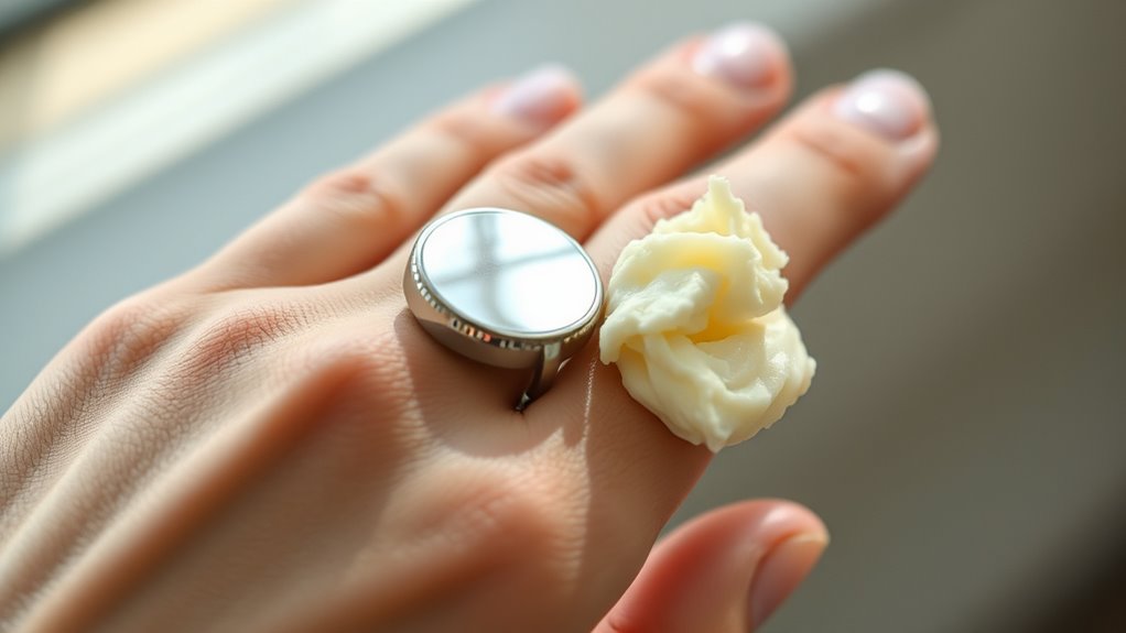 Using butter to remove a stuck ring is effective, but you should take precautions. Always use unsalted butter to avoid skin irritation. Apply a generous amount around the ring and your finger, massaging it in gently. Twist the ring back and forth without forcing it. If it doesn’t budge, reapply butter or wait a minute before trying again. Monitor for swelling or discomfort, and if issues arise, seek professional help. There’s more you can learn about safe removal techniques.