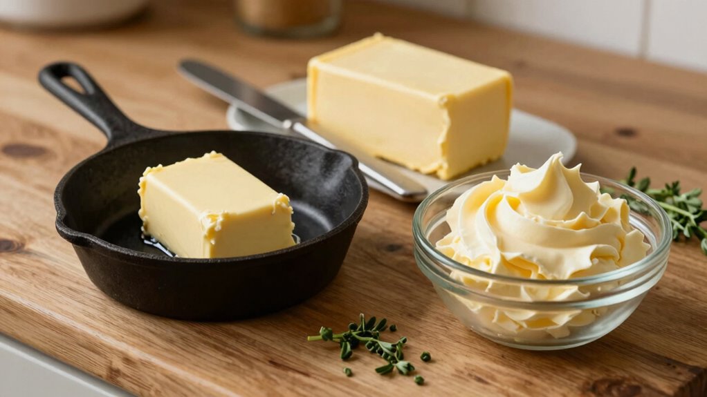 Understanding these terms helps you choose the right butter for each recipe and attain better results in the kitchen. Whether you’re spreading salted butter on toast, creaming unsalted butter into cake batter, or using ghee for high-heat cooking, knowing the differences guarantees you’re making informed decisions. So, next time you reach for butter, consider what your dish needs most—flavor, texture, or heat stability—and select accordingly. Mastering these basic butter terms puts you a step closer to becoming a more confident, precise home cook.