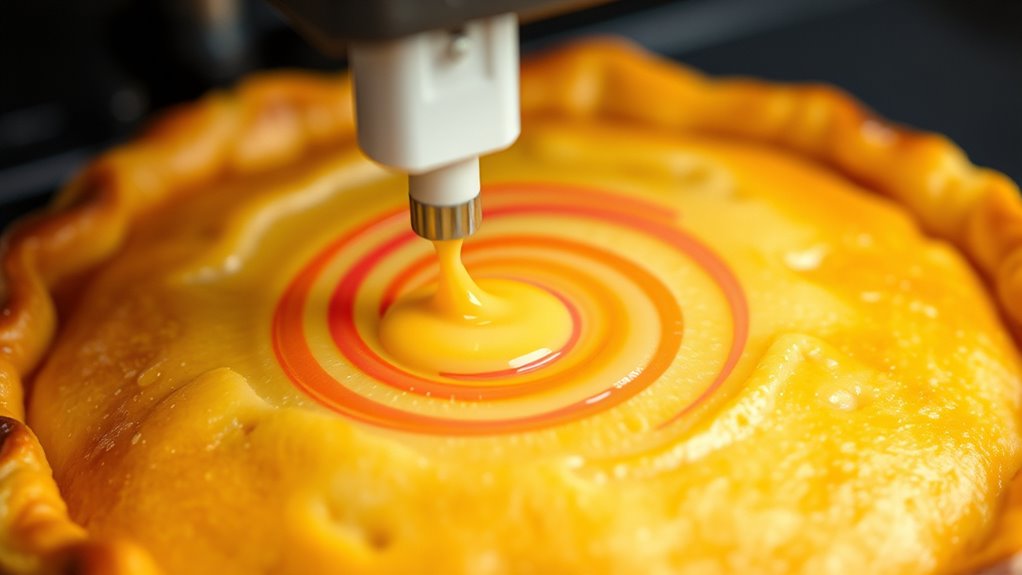 Edible butter ink has advanced 2D food printing by allowing you to create detailed, colorful designs with precision and vibrant effects. Its composition balances fats, emulsifiers, and natural colorants, making it safe and customizable for various culinary styles. You can apply it using brushes, stencils, or printers, offering endless creative possibilities. If you want to explore how these innovations are shaping the future of edible art, there’s more to uncover ahead.