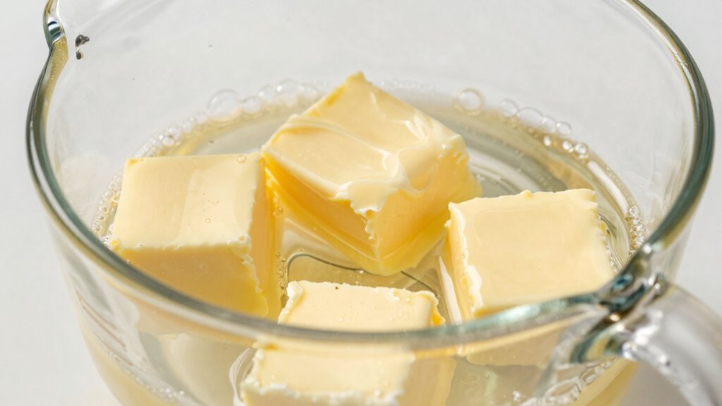Like a magician with a flick of a wand, you can melt butter in the microwave in about 15 to 30 seconds. Keep an eye on it to achieve your desired butter consistency, whether soft or fully melted. Use microwave-safe containers to guarantee safety, and stop the process every few seconds to stir. This quick technique keeps your butter smooth without splattering, making your cooking magical and mess-free.