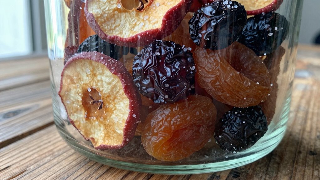 Surprisingly, yes, certain preservatives can stop moisture reabsorption. Natural preservatives like vitamin E or rosemary extract act as moisture barriers, preventing rehydration. You might think these foods are destined to reabsorb moisture, but applying these natural preservatives creates a shield, keeping your dried foods crisp. So, next time you want to preserve dryness, remember that moisture barriers and natural preservatives can be your best friends in maintaining perfect dryness.