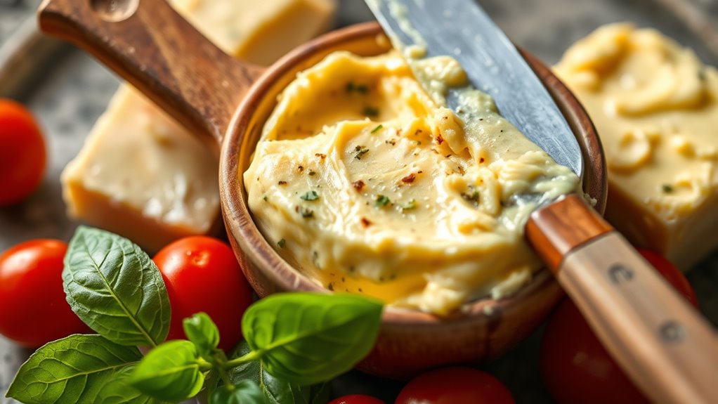 Spreadable blends combine the rich taste of butter with heart-healthy vegetable oils, giving you a flavorful and nutritious alternative. These blends introduce healthier fats that may support your overall well-being and help reduce bad cholesterol levels. You can easily use them to enhance meals, whether spreading on toast or sautéing veggies. Plus, with various flavors available, you’ll find the perfect blend for any dish. Discover even more benefits and culinary tips about these delicious spreads.