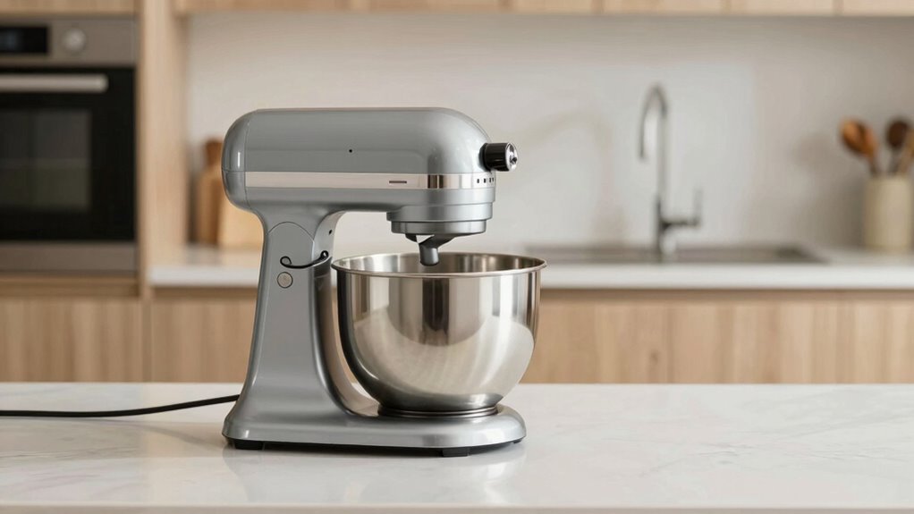 Ultimately, choosing between a tilt-head and bowl-lift mixer depends on your space and baking habits. It’s funny how the right mixer can unexpectedly transform your kitchen, making prep work feel effortless. Whether you find yourself reaching for the compact tilt-head or the sturdy bowl-lift, it’s all about fitting your lifestyle. When space is tight, the perfect mixer isn’t just a coincidence—it’s the one that makes your baking dreams come true.